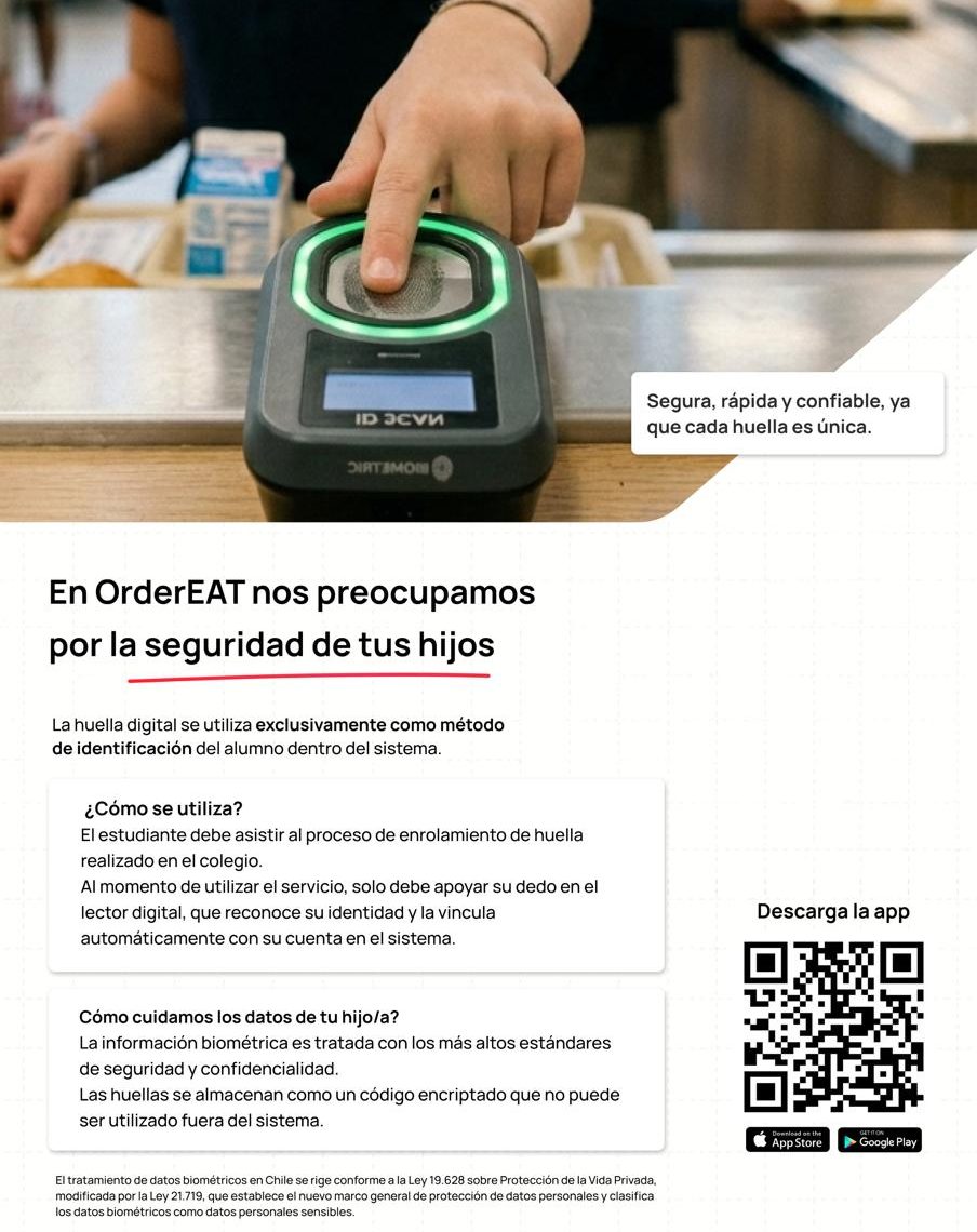 Se informa a la comunidad educativa que ya se encuentra disponible a partir de Abril la nueva app OrderEat, la cuál permite cargar saldo para su uso en nuestro casino.